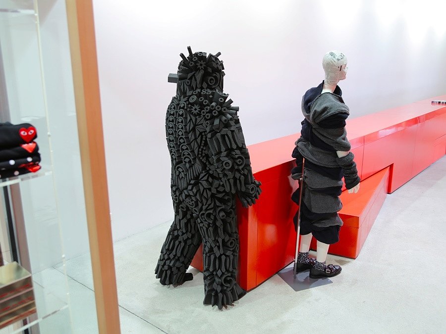Проблемные моменты начинают возникать при сочетании противоположных, не гармонирующих друг с другом тактик. Смешанный подход к манекену все чаще порождает вовсе не тот эффект, который хотели произвести горе-дизайнеры и разработчики. Приведем несколько примеров для более полного понимания. Вот спортивный магазин, в нем специализированные манекены с подчеркнутым рельефом мышц. Они безлики, выставлены в произвольных позах: бегун, гимнастка, девушка в асане йоги. В этом антураже будет очень странно увидеть только лишь форму-ноги, котрые куда-то "бегут": возникнет мысль про зомби-апокалипсис, а никак не про здоровый образ жизни. Не так давно критику знатоков вызвала витрина детского магазина: красиво одетые манекены в игровых позах, при этом лишенные голов! Сознание человека говорит ему: вот весело танцующий и прыгающий (судя по положению тела и жестам) ребенок. То есть в ту секунду, когда произвольная поза и натуралистичность оформления манекена породила образ "это похоже на живое дитя", отсутствие головы создает неприятный холодящий контраст и явно отрицательное отношение к витрине и магазину, даже если прохожий и не ловит себя на этой мысли.