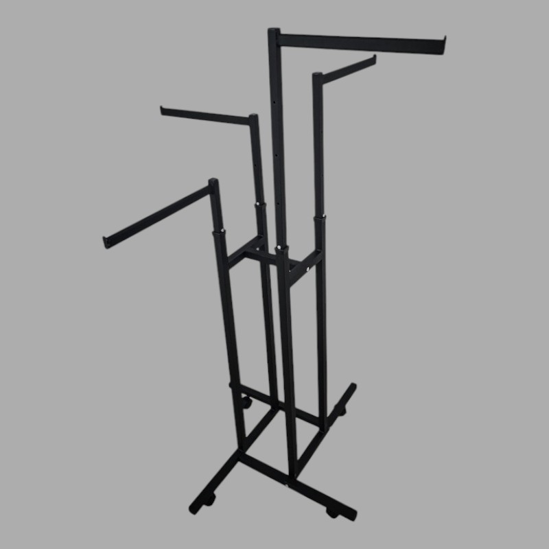 Порошково-полимерное покрытие: цвет черный. Возможна покраска в другой цвет по запросу. Колеса в комплекте. Вес вешала - 13 кг.